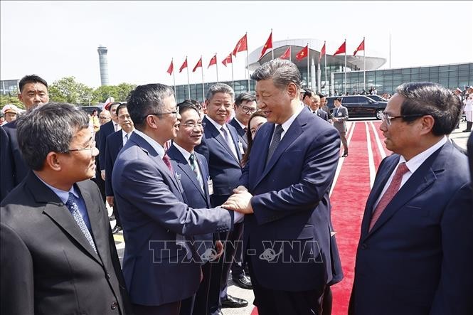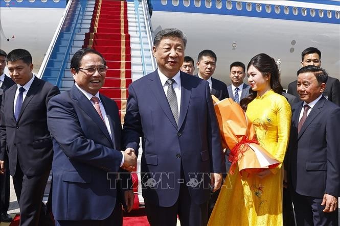 党中央政治局委员、政府总理范明政到内牌国际机场为中共中央总书记、中国国家主席习近平送行。(图:越通社)