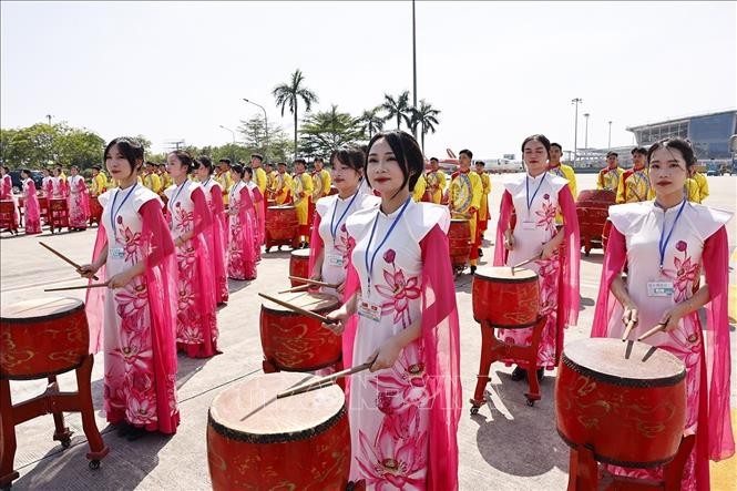 在内牌国际机场,在鼓声和身穿越南54个民族服装表演的舞蹈中,范明政总理祝贺习近平总书记、国家主席对越南进行的国事访问取得圆满成功;强调在越中两国正迈入新纪元——发展新纪元的背景下,此次访问对两党、两国关系的发展具有战略意义和产生持久影响。