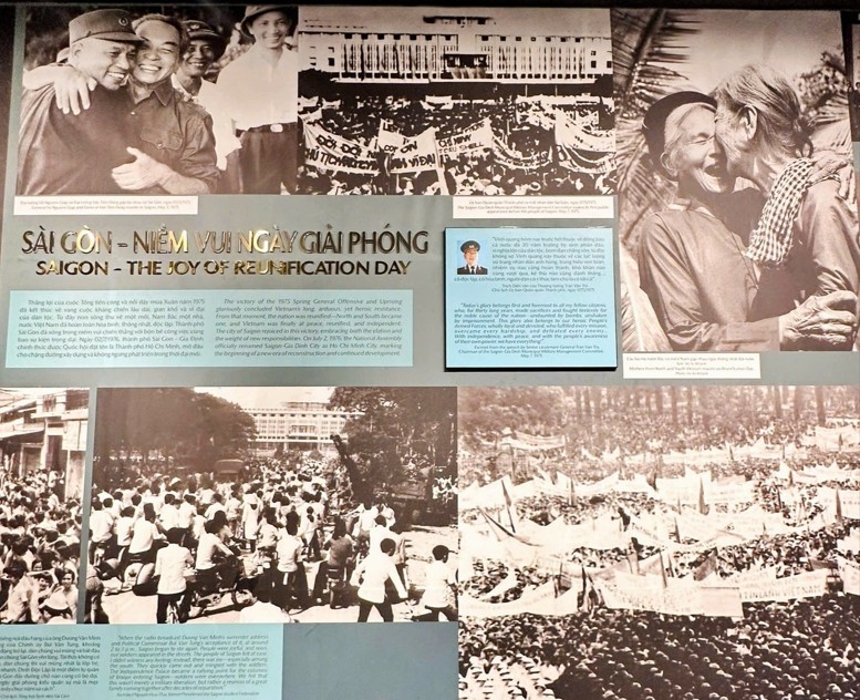 “从巴黎协定到1975年春季大捷”专题展览展示了140件实物、图片与资料等,生动再现了从1973年落实巴黎协定到1975年春季大捷期间,民族经历的艰辛与光辉的历程。展览内容分为三大部分:第一部分是关于越南停止战争、恢复和平的《巴黎协定》;第二部分是1975年春季大捷;第三部分是和平。