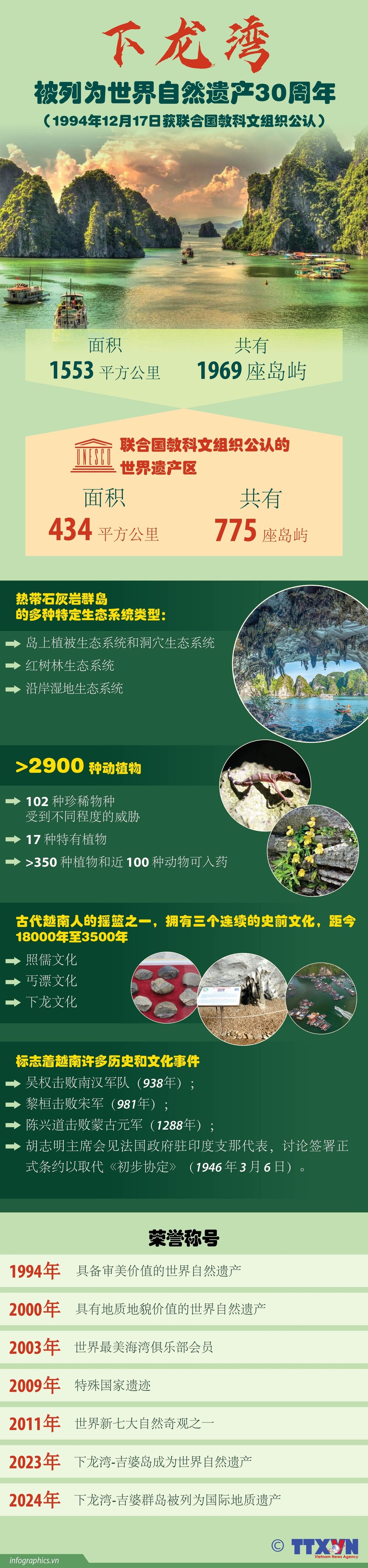 据越南文体与旅游部遗产局的统计数据显示,截至 2024 年年中,全国共有 4 万多处遗迹,其中被联合国教科文组织列入“世界文化与自然遗产”名录有8处、国家特殊遗迹130 处、国家遗迹3621处以及超过1万处省级遗迹。