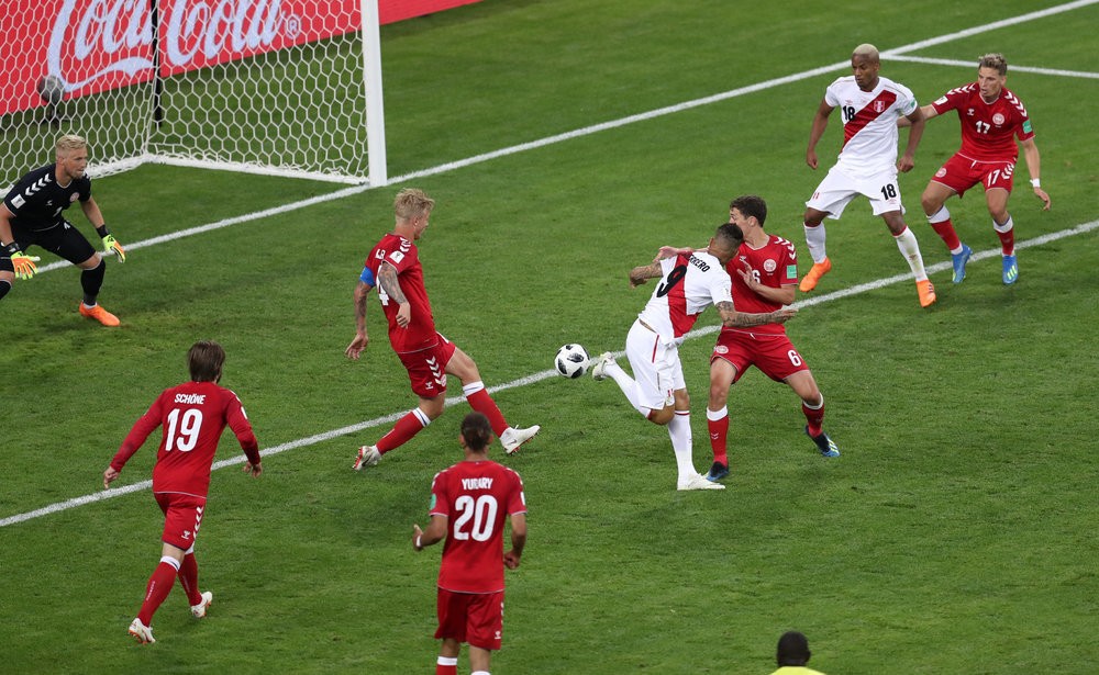 C組丹麥對秘魯於16日晚上11時開始,下半場比賽 第59分鐘,埃裏克森(Eriksen)帶球推進到禁區前,一腳直塞送禁區,鮑爾森(Y.Poulsen)稍作調整推射近角破門,丹麥1-0領先。這也是本場比賽唯一進球,丹麥最終1-0戰勝秘魯。