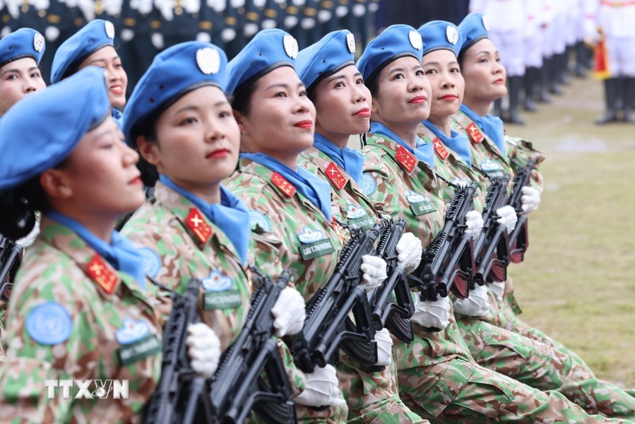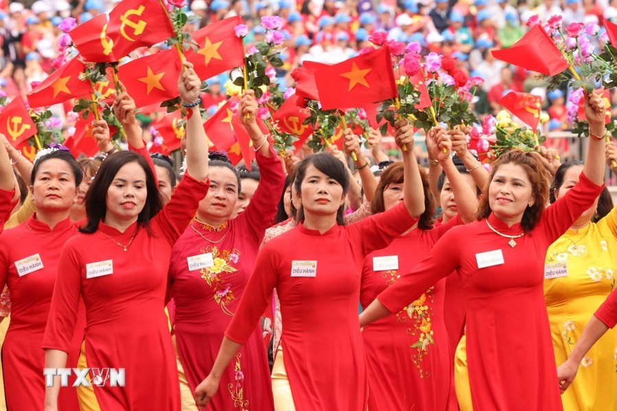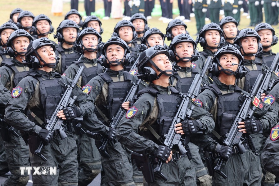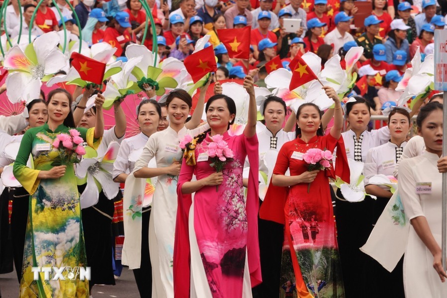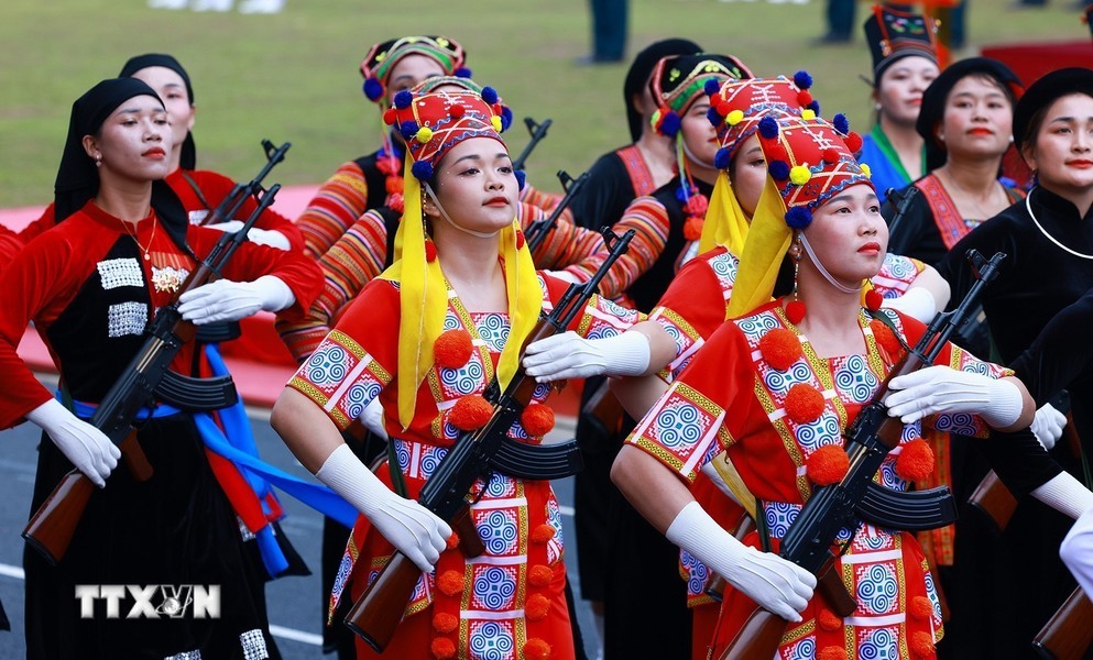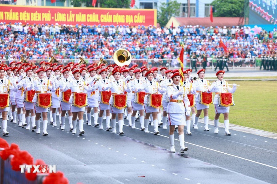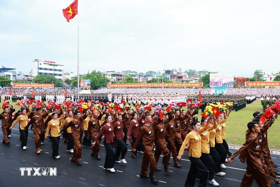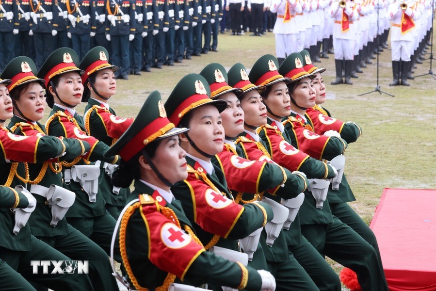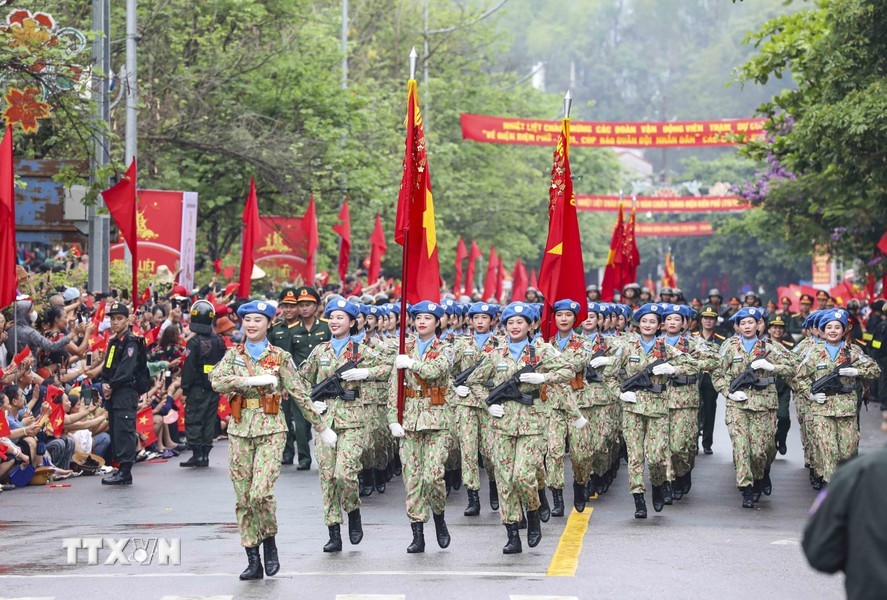 随后是,女军乐队力量演奏豪迈且雄壮的军队音乐。接着是奠边府战士、兵种代表陆军军官集合越南人民军,越南人民海军军官,防空空军军种武装力量,边防部队军官,越南海警军官,军医女军官力量。另一个新力量是网络空间作战力量,越南维和部队,陆军军官,特工战士,越南人民军特任军队,西北民族女民兵,南部女游击队。公安传统旗帜小组指挥车、军旗车,人民安宁军官,人民警察军官,交警女军官,消防与救援警察军官,机动警察军官,特任警察女战士,特任警察战士,骑兵机动警察,红旗队、越南退伍军人,青年突击队,火线民工力量,工人、农民、知识分子、越南青年和妇女、西北少数民族同胞,最后是文化艺术团体。