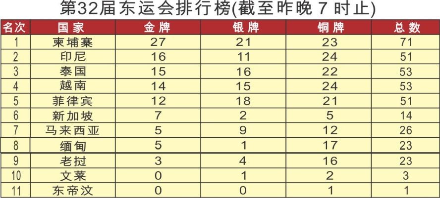 为越南体育团夺得金牌的运动员如下:范进产(铁人两项男子个人);张草媚、张草薇、黄氏乖及阮氏小唯(3x3篮球女子组);黄氏美心(空手道女子55公斤以下级);丁氏香(空手道女子68公斤以下级);陶鸿山(柔术无袍男子56公斤级);杜芳草(越武道女子60公斤级);阮清廉(越武道男子60公斤级)及范成宝(男子100米蛙泳,打破大会纪录)◆