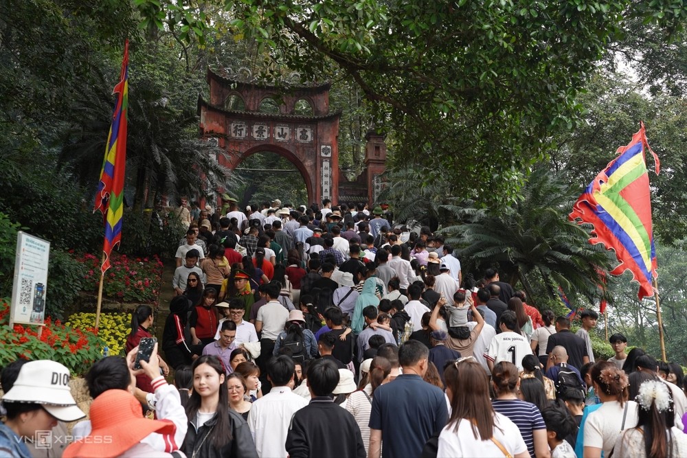 中午,广大游客开始集中到雄王庙大门和广场膜拜。在此,公安力量整排并列,实施交通管制以免雄王庙各条引道拥堵。尽管人山人海但没有发生拥挤争先恐后,民众与游客遵守秩序游览。