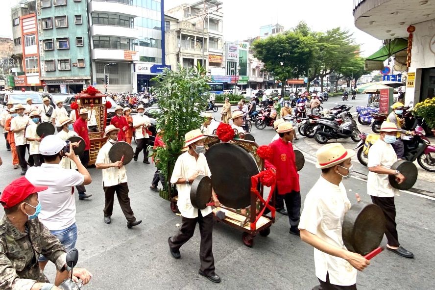 明(5)日,适逢正月元宵佳节,第五郡师竹轩精舍大锣鼓队将参加游行。该团从上午7时在舍址富友街开始出发,转过阮廌街到义安会馆关帝庙演奏參拜,之后从伞陀街绕过陈兴道-梁汝学-海上懒翁街上森举桥,下桥后前往第八郡高春育街可妙坛參拜,之后从高春育街返回森举桥,下桥后右拐第五郡梁汝学街走出武文杰街,直走转入冯兴街到海上懒翁街到二府会馆參拜,之后折返舍址。