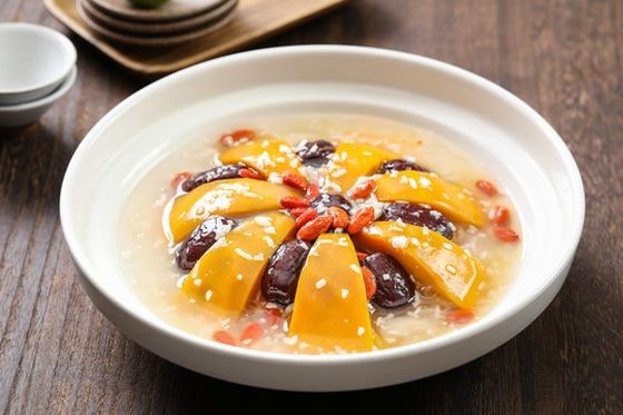 食材:南瓜1个,百合2个,黑枣15个,蜂蜜一小勺,糖桂花一小勺。