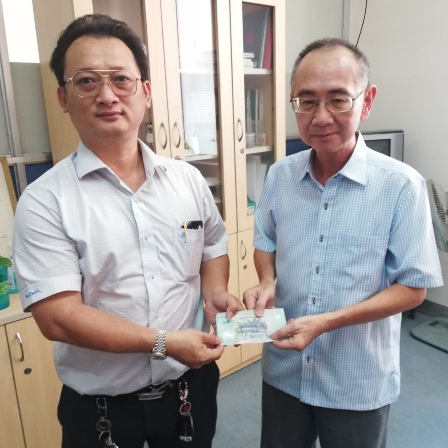 获悉黎德全的困境后,昨(17)日上午,向来热心于公益及教育活动的本市华人企业家邹国荣(见图,左)马上捐出1300万元,并建议须尽快把款项转给病者作为施手术之费用,以能尽快康复。同日下午,在收到上述善款后,黎德全感谢邹国荣企业家的慷慨解囊,及时向他伸出援手,让其有条件接受治疗和继续工作◆