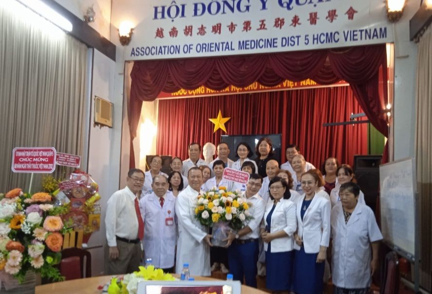 (本报讯)值越南医生节成立68周年,今(27)日上午,第五郡祖国阵线委会前来第五郡东医会探访和赠送花篮庆祝(见图)。