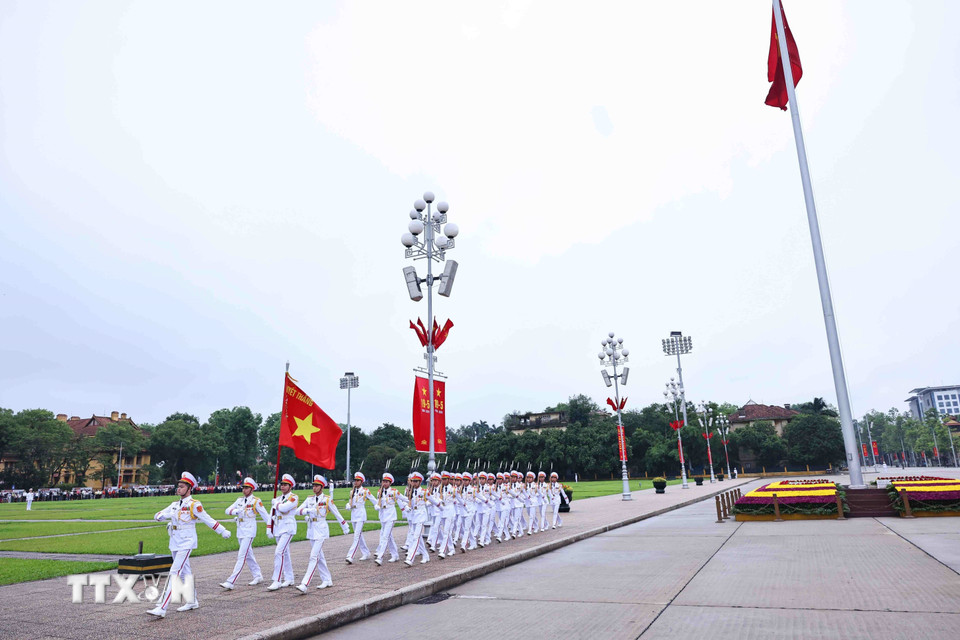 5月19日上午,值胡志明主席诞辰135周年(1890.5.19-2025.5.19)之际,在历史悠久的巴亭广场举行了庄严而特殊的升旗、奏国歌仪式。