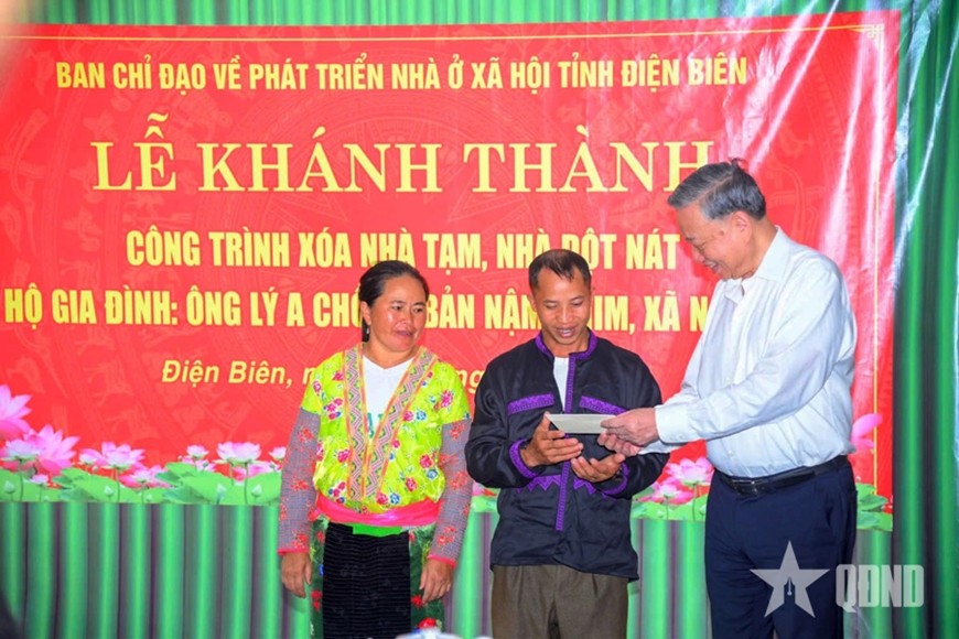 〔又讯〕随后,苏林总书记和中央工作团已出席奠边省那桑乡念钦村李阿仲家庭的临时与简陋住房拆除工程落成仪式,并向当地10户优抚政策家庭赠送礼物。