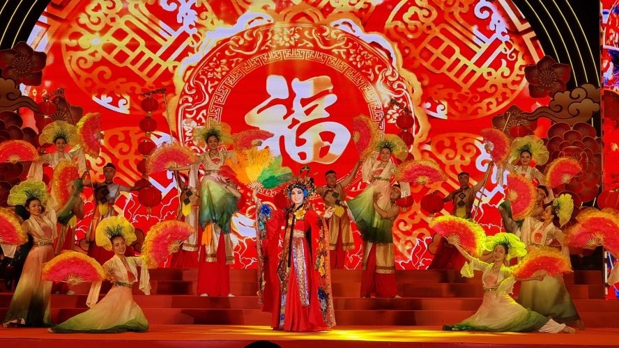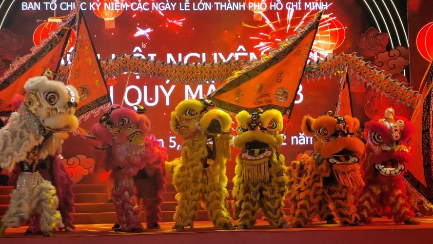 在大萤幕上播放各会馆庆元宵节的活动,随后各团在街上游行后依次上台表演,舞龙舞狮,载歌载舞,气氛沸腾。第五郡人委会副主席阮武春奇在台上致词: 第五郡元宵节已维持逾30年,于2020年已正式获得文体与旅游部公认为“国家级非物质文化遗产”。迄今元宵节已成为本市的传统节日,同时也是本市19文化事件之一。从1999年至今,规模不断得到扩大,活动越来越丰富多样,除了游行节目外,还有第五郡文化中心的精彩文娱活动、各华人会馆介绍各种传统饼干、举办舞龙狮艺术、民族歌剧、歌唱表演等具有华人文化特色的活动。今年还有当地若干餐馆参加饮食促销以为消费者服务。此外,群众还参与各项民间游戏,共欢度一个快乐热闹的元宵佳节。