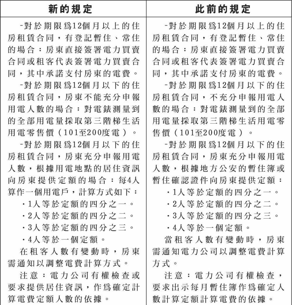 基本上,房东的电费计算方式与此前相同,只有用于确定用电户的依据从暂住簿改成居住资讯,以符合自2023年1月1日起不再使用户口簿、暂住簿的规定。